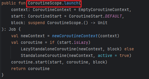 - 모든 코루틴 빌더(launch, async 등)는 코루틴 스코프의 확장 함수이다.
