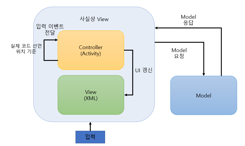 그러면 결국 안드로이드 MVC 패턴은 MVC가 아니라 MV 패턴이라고 불러야 하지 않을까?