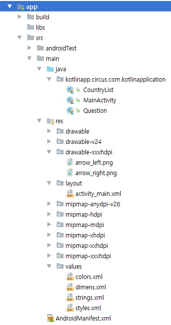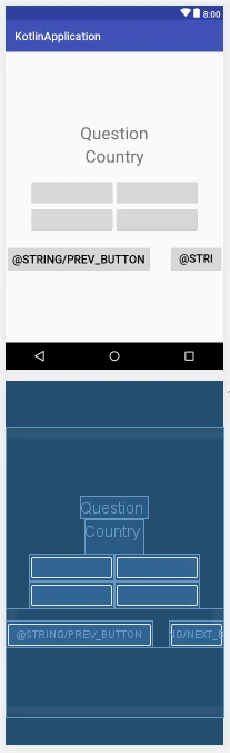 위와 같이 레이아웃 생성 후 텍스트뷰에 질문과 국가 정보를 출력할 수 있도록 연결해보겠습니다.