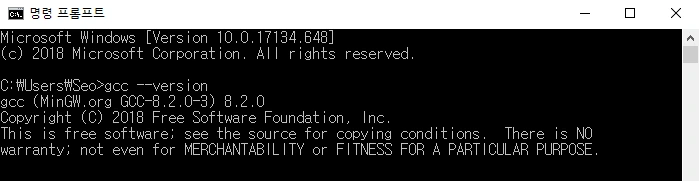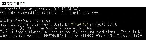 환경 변수 추가를 완료했으면 다음과 같이 cmd창에서 gcc --version 명령어를 통해서 gcc 버전 확인이 가능하다.