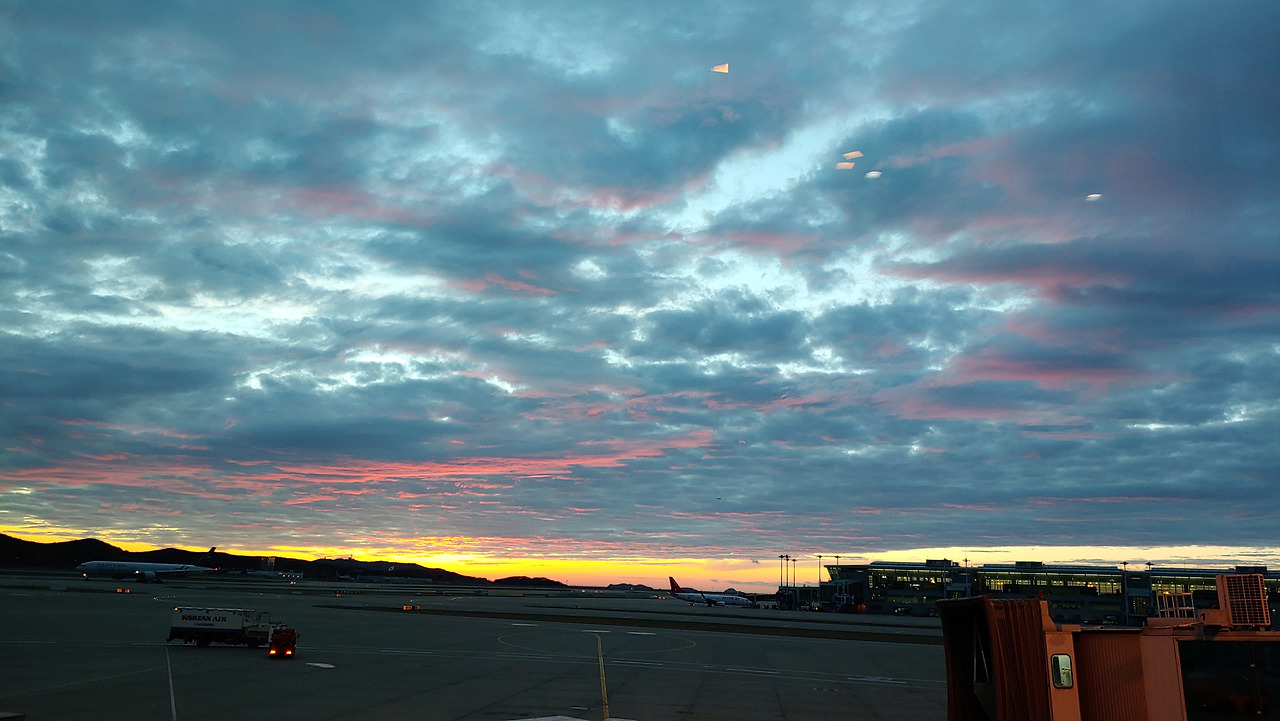 플렉서블 근무제가 도입되어 금요일 일찍 퇴근할 수 있었다. 퇴근 후 집에 가서 짐을 들고 공항으로 향했다. 비가 조금 내렸지만 기쁘게(?) 맞으면서 갔다.