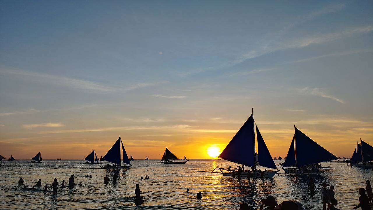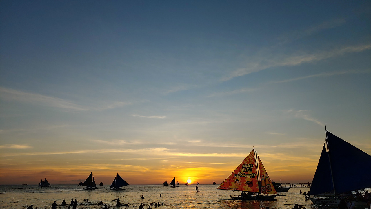 식사를 하고 노을을 보았다. 선셋 세일링 투어가 있을 정도로 보라카이의 노을은 유명하다. 낮에는 푸르름으로 청량한 자태를 뽐내더니 저녁에는 완전히 색다른 매력의 노을을 선사했다.