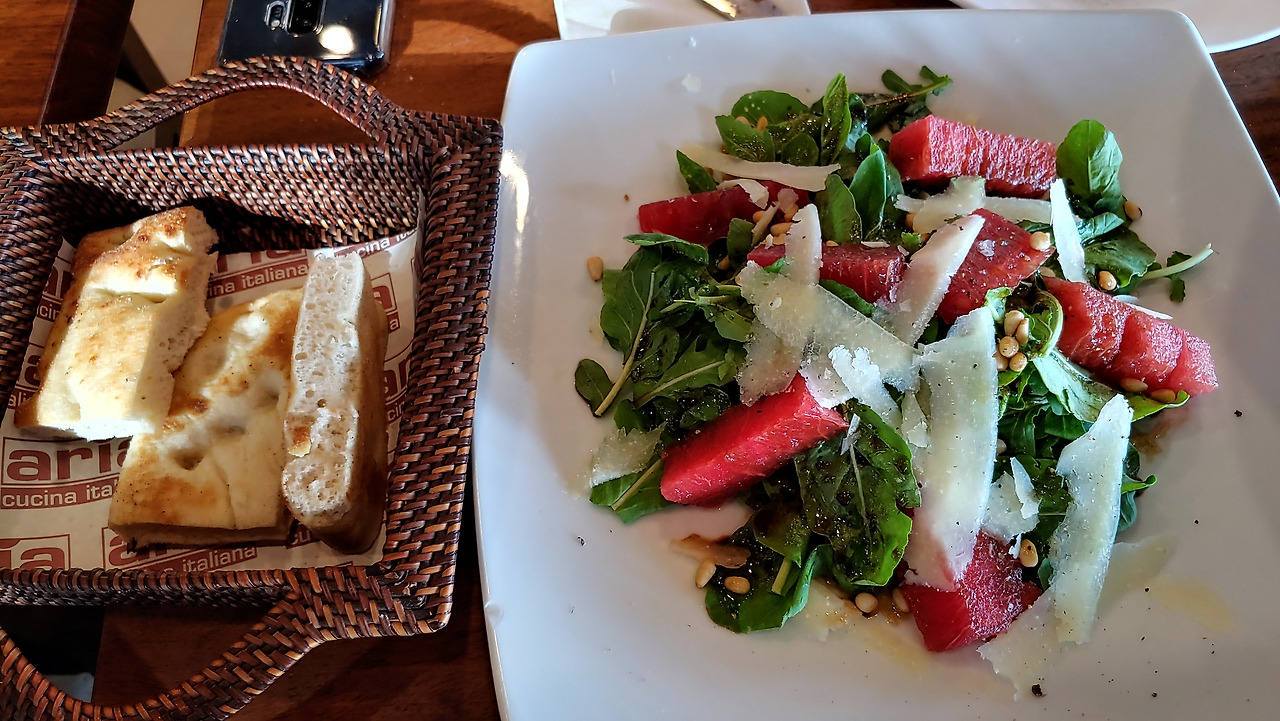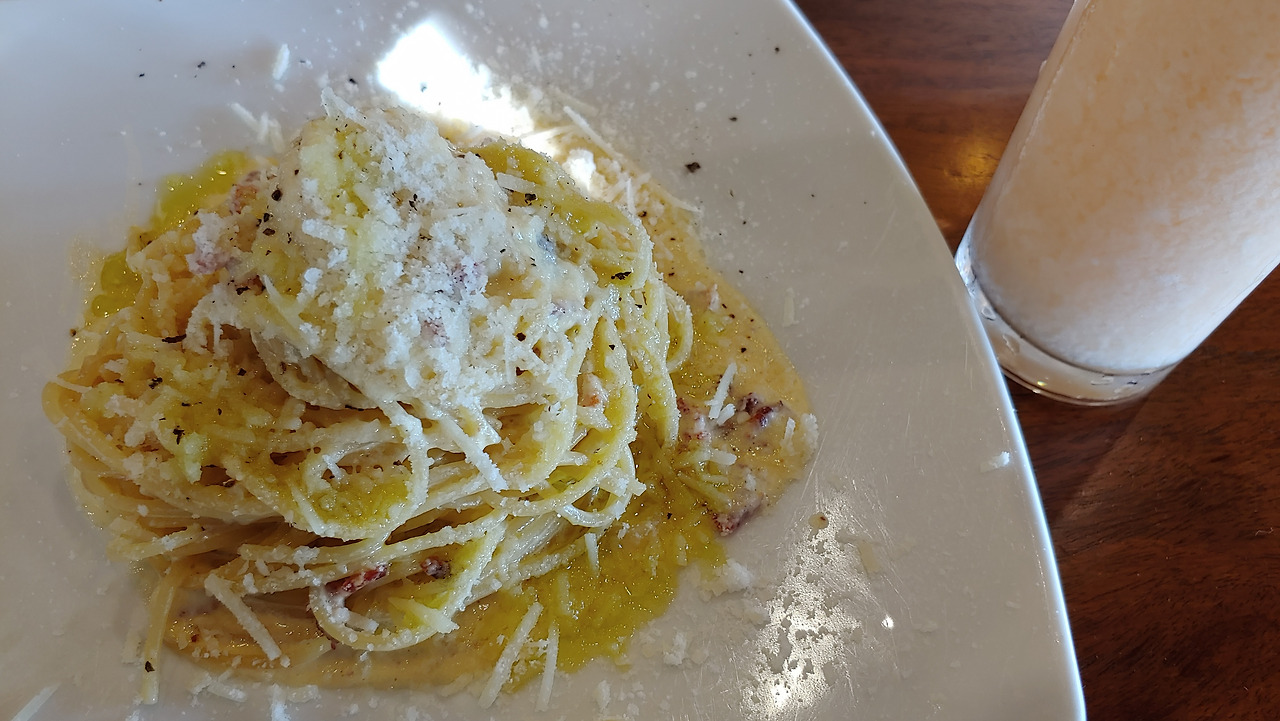 까르보나라와 아리아 피자 그리고 수박 샐러드를 주문했다. 까르보나라는 익숙한 듯하면서 조금 짭짤했다. 피자도 짜다. 전반적으로 음식이 짠 편인 것 같았다. 발사믹 소스와 수박의 조합도 그다지였다. 멜론 주스는 진짜 맛있었다. 녹색이 아니라 주황빛이 도는 것을 보니 락멜론으로 추측되는데 당도가 아주 좋았다. 그래서 2잔을 마셨다.