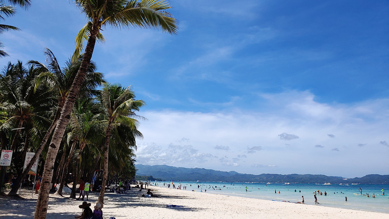투어 가이드와 접선하기 위해 화이트 비치로 나왔다. 다행히 화이트 비치에는 야자수가 많아서 그늘이 조금씩 있었다.