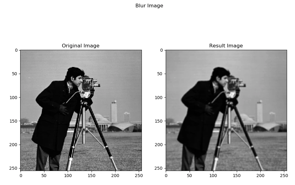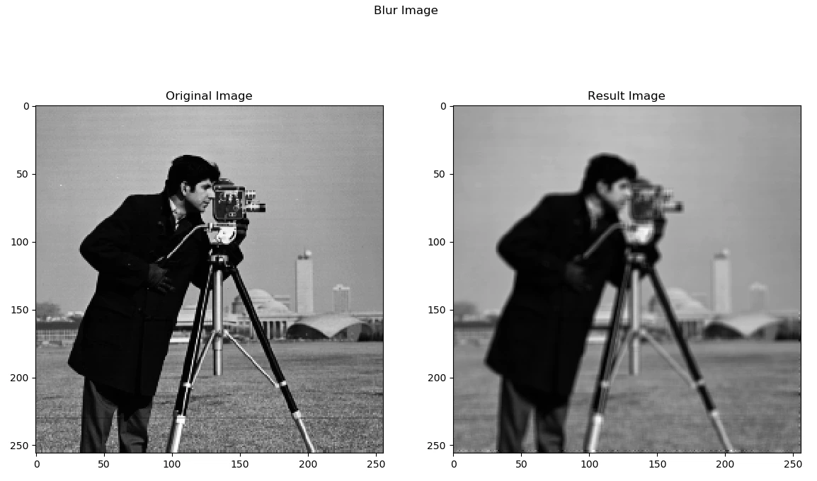 이런 식으로 모든 픽셀을 주변 픽셀의 평균값으로 대체하면 이미지가 흐리게 된다. 즉 블러 효과가 나타난다.