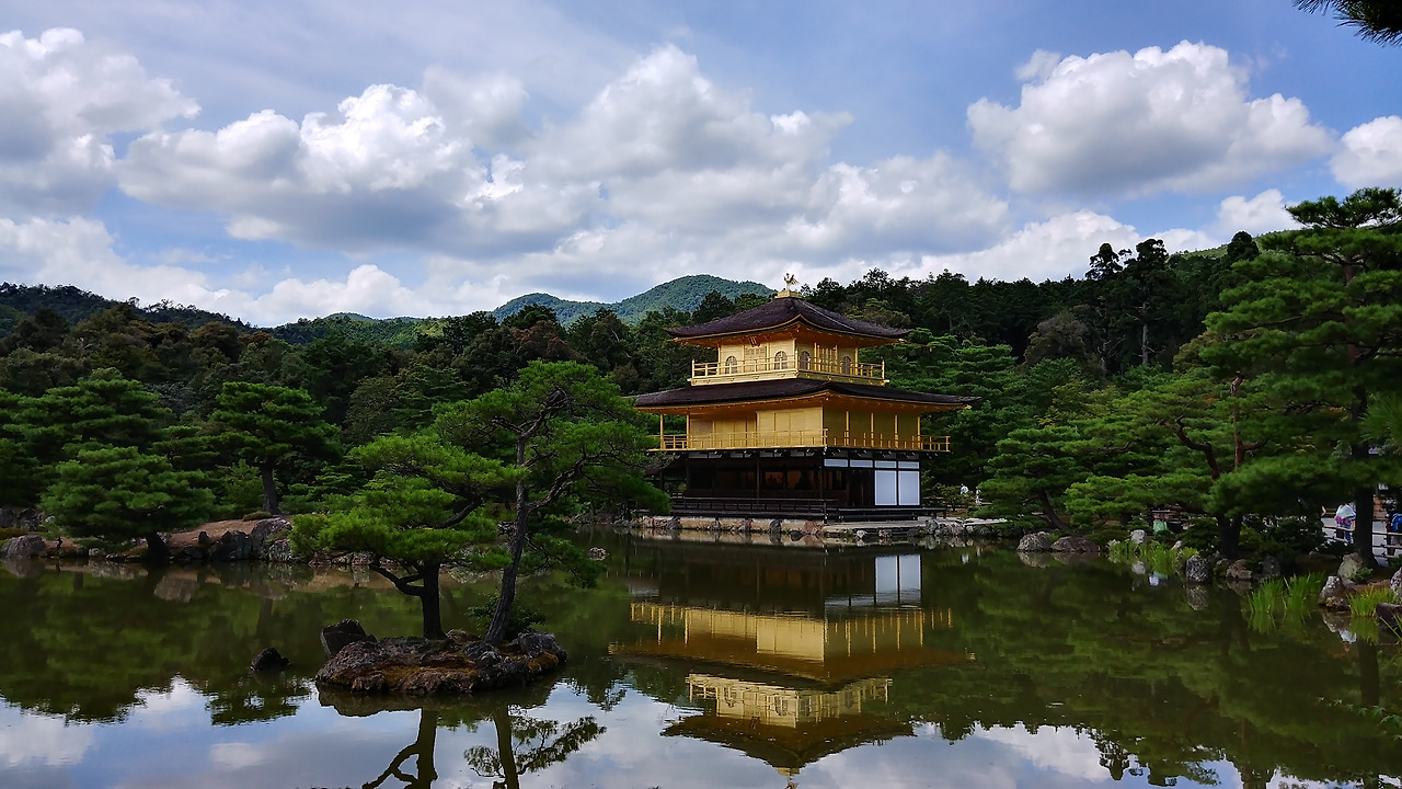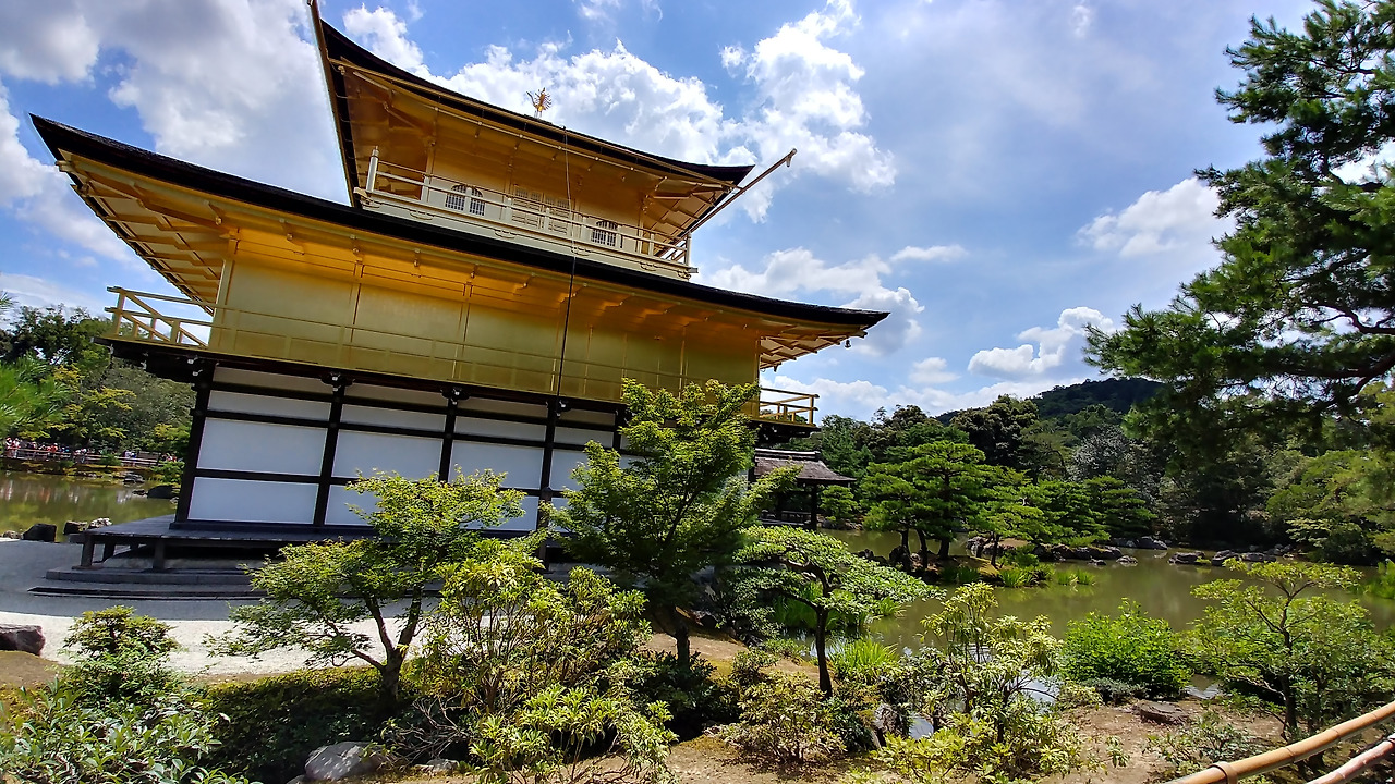 식사 후에 교토의 금각사(金閣寺)로 향했다. 지난 오사카 여행 때 부랴부랴 왔지만 시간이 늦어 입장하지 못했던 금각사! 날씨까지 좋아서 더욱 멋지게 보였다. 하지만 가까이 가서 보니 금색이 약간 조악했다. 래커 스프레이를 뿌린 느낌이랄까.