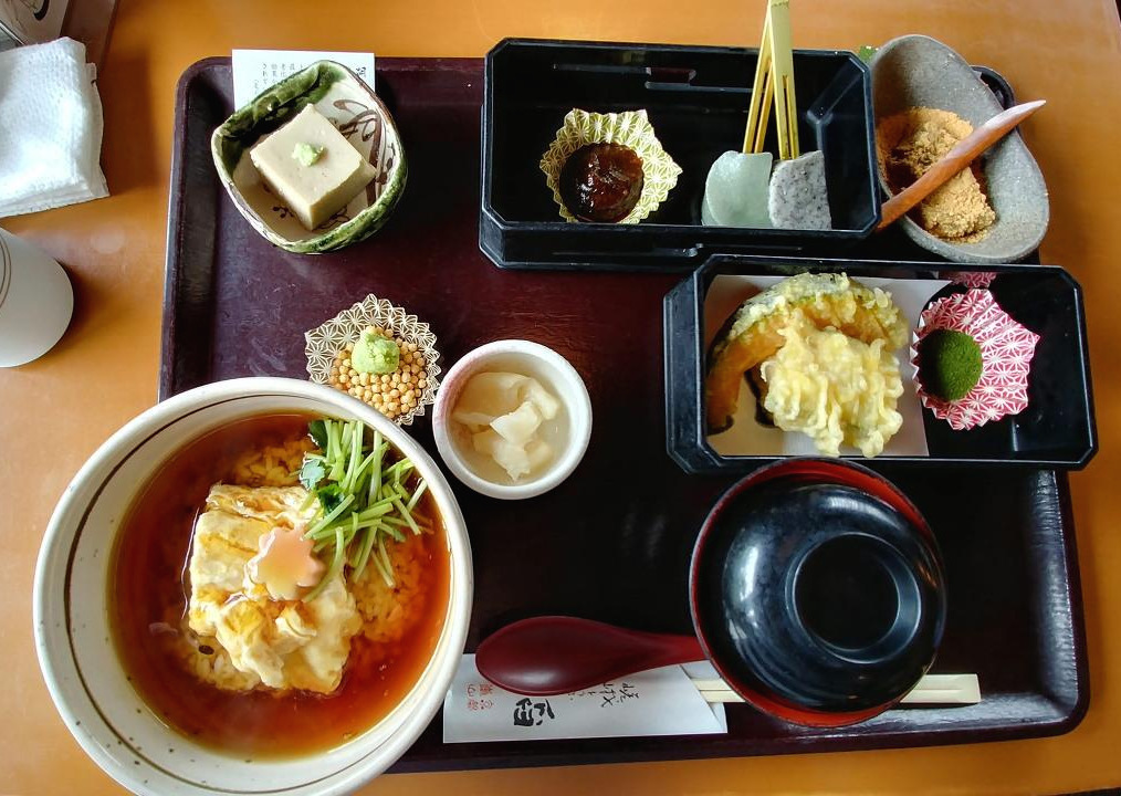그렇게 이동한 곳은 가정식 느낌이 나지만 메뉴가 정확히 뭔지 느낌이 오지 않는 곳이었다. 유바(湯葉)를 주력으로 하는 가게였다. 정식 같은 메뉴인데 정확한 이름을 잘 모르겠다. 교토 유바(京湯葉) 블라블라.