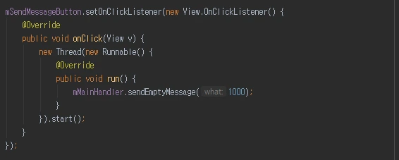 post() 대신에 sendEmptyMessage()를 통해서 Message의 필드 중 하나인 what을 전달한다.