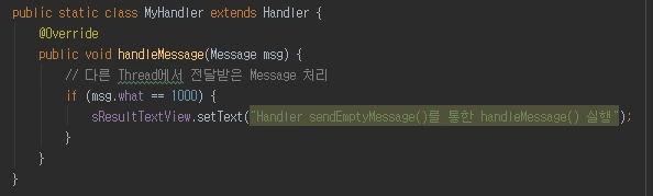 전달된 Message의 what은 다음과 같이 handleMessage()에서 처리한다.
