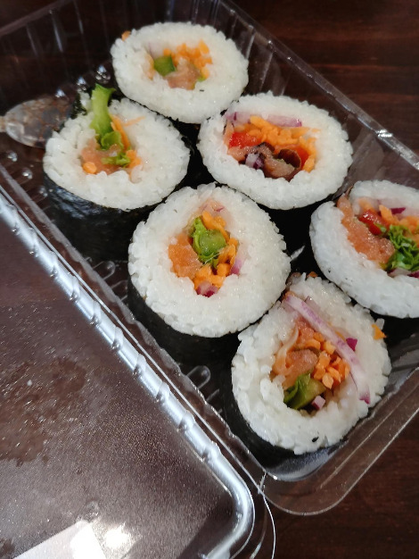 한국 컵라면도 판매 중이었다. 김밥은 아닌 것 같고 연어 마끼로 보이는 걸 사 먹어봤다. So So...