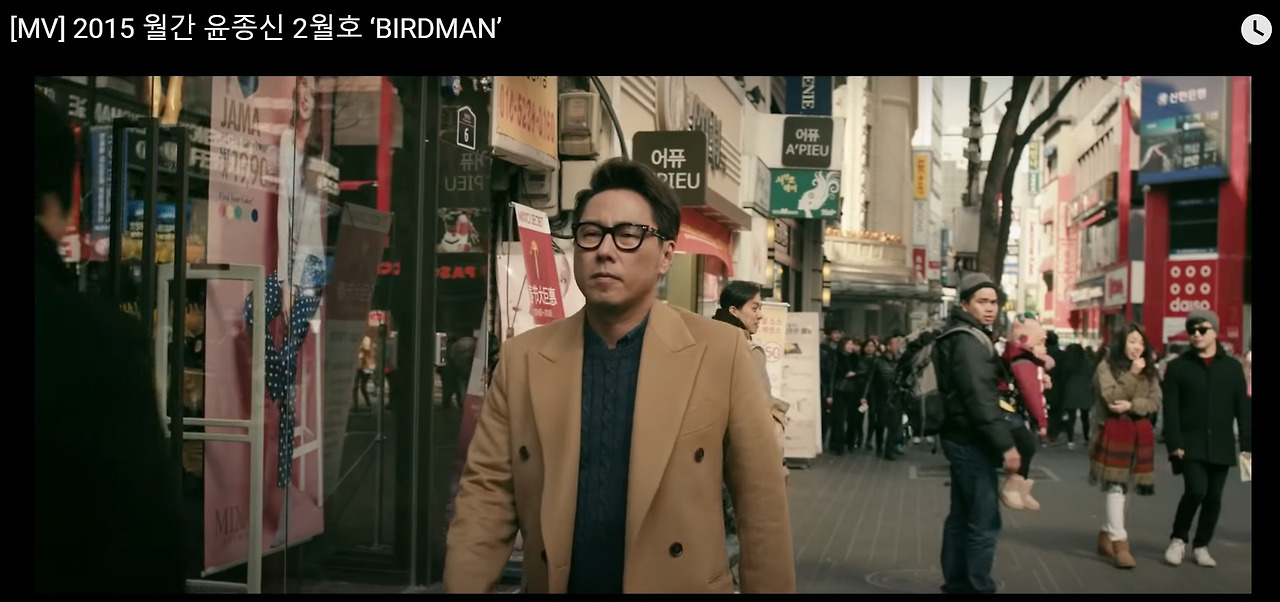 영화 <버드맨>의 기억을 떠올리려고 검색하던 중, 이 영화를 모티브로 만든 노래가 있다는 걸 알게 되었다. 2015년 2월의 월간 윤종신의 <버드맨>이라는 곡이다. 이 노래의 뮤직 비디오는 굉장히 멋있다. 처음부터 끝까지 윤종신이 조금 지치고 담담한 표정으로 거리를 걷는 모습을 슬로 모션으로 담고 있는데, 노랫말과 윤종신의 표정이 너무 어울려서 몰입감을 준다.