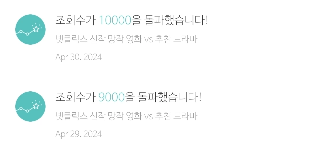 이런 글은 갑자기 조회수가 터진다. 몇 시간이 지나지 않아서 1000씩 올라가는 알림이 뜬다. 10000회까지 알려준다.