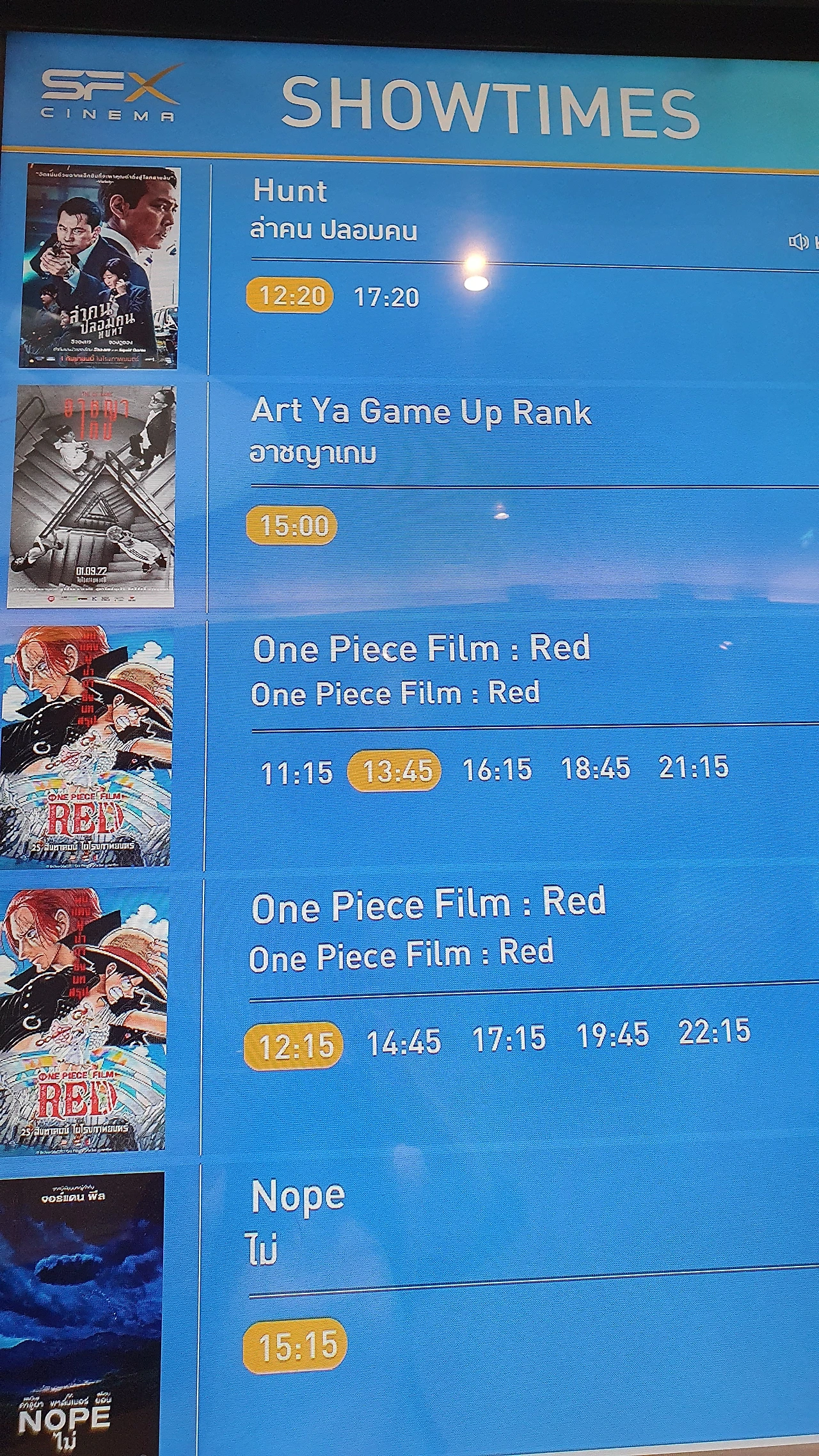 태국 극장은 외화의 경우 상영시간이 나눠져 있다.
