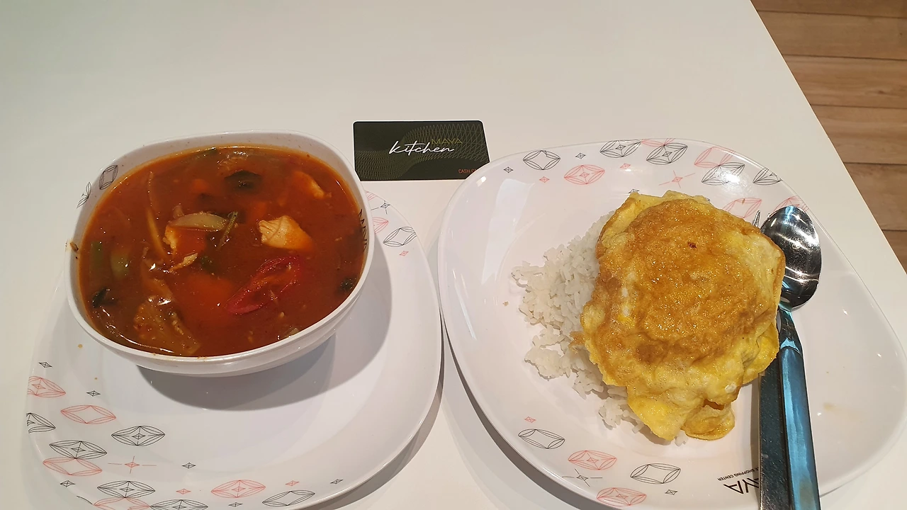 오늘은 커리하고 타이 오믈렛을 주문했다.