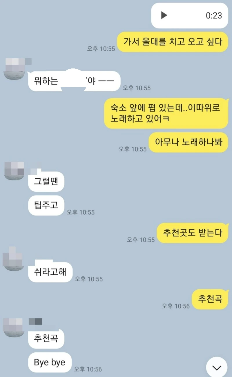 노래 녹음해서 동생한테 보낸 후 나눈 대화