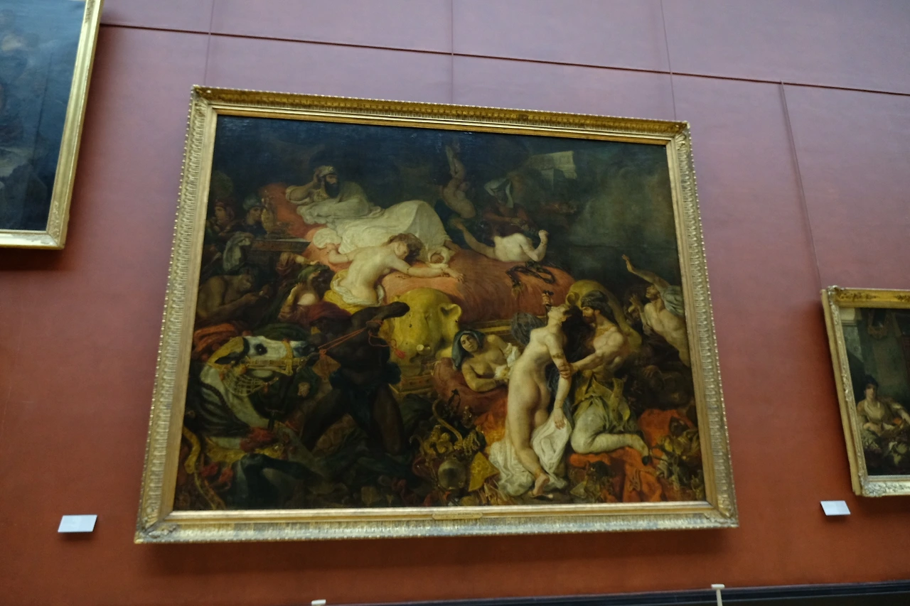 아시리아의 왕 사르다나팔루스가 전쟁의 패배를 직감하곤 자신이 소유하던 모든 노비와 보물과 함께 장작 더미에 올라 타죽었다는 이야기를 바탕으로 한 작품입니다. 내 것을 빼앗기느니 모두 없애버리겠다는 처절한 욕망이죠.