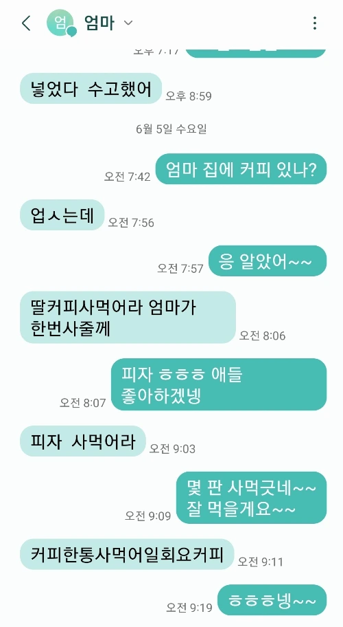 집에서 소소하게 마시는 커피 믹스가 다 떨어져, 혹시나 싶어서 아침 댓바람부터 엄마에게 문자를 넣었다.
