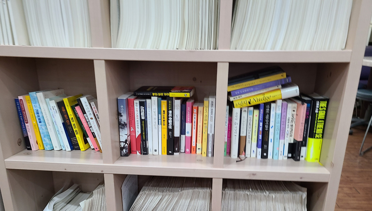여기서 읽고 돌려본다고 책을 꽂아둔 것도 한 칸에서 두 칸, 세 칸까지 됐다. 이상하게도 일하면서 읽는 책이 더 재밌더라.