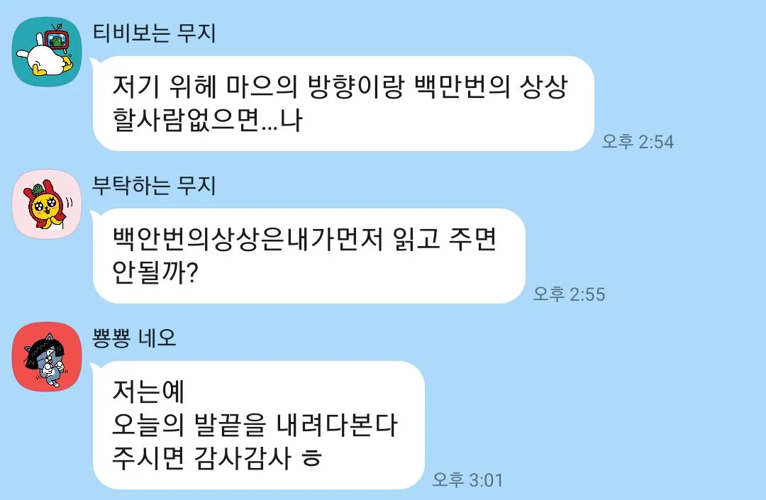 마음을 나눌 곳이 있다는 것, 나의 이야기(고민)를 터놓을 수 있다는 일이다. 우리는 3주 뒤에 어떤 모습이 될까.