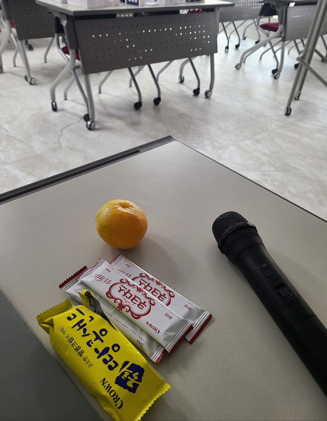 교육생이 주신 간식과 수업 때 사용하는 마이크