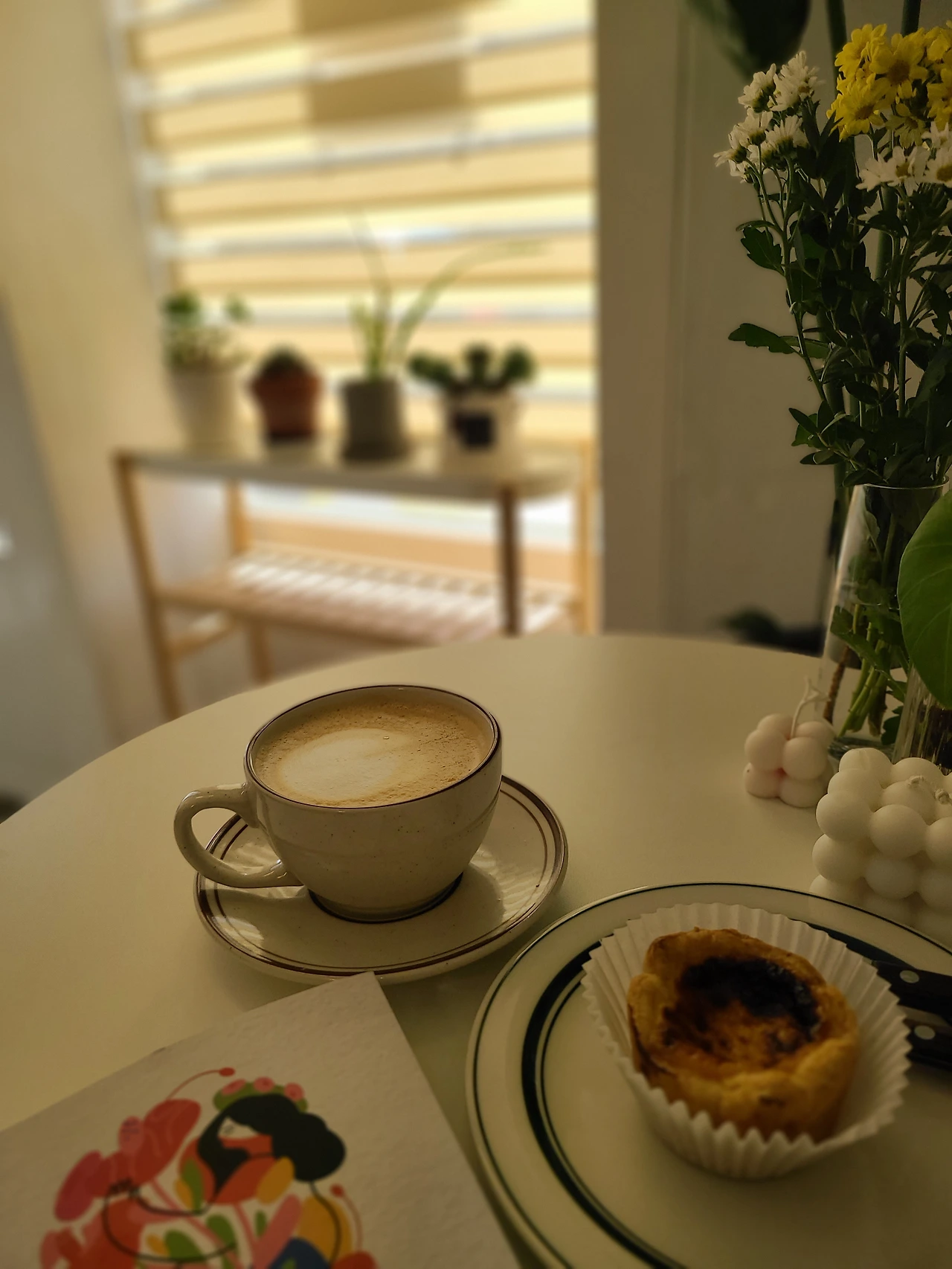 늘 마시는 라테와 오늘은 에그타르트도 하나 시켰다.
