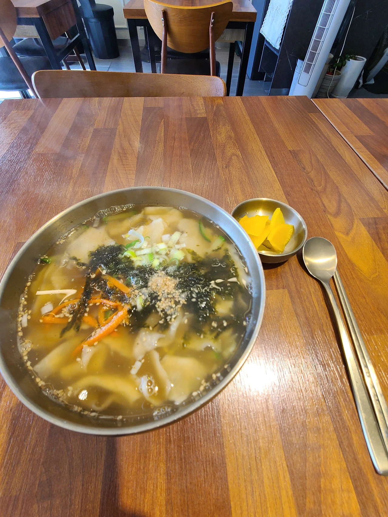 안 가본 식당에서 수제비를 먹었다.