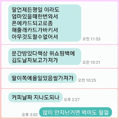(설마 엄마와 함께 '사'먹은 마라탕이라던지, 회전초밥을 기억하진 않을까.)