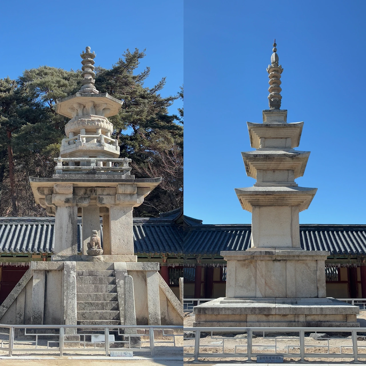 이렇게 다른 모양의 두 탑이 한 공간에 나란히 배치되어 있다는 사실은, 통일신라가 단순히 규격화된 시대가 아니라 질서와 자유, 절제와 장엄이 함께 공존하던 시기였음을 말해준다.