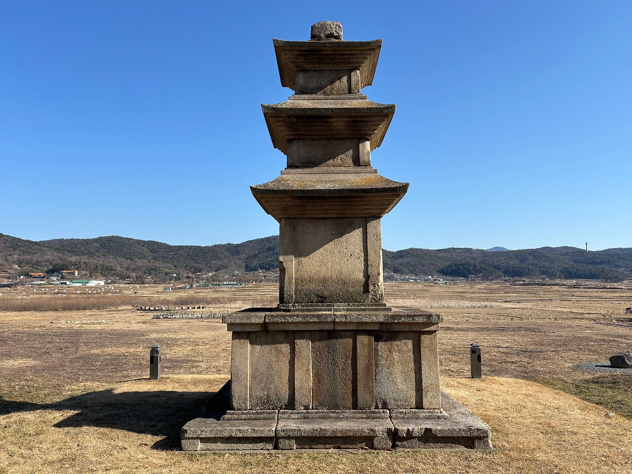위 사진은 통일신라 시대의 석탑으로, 기단부가 선명하게 드러나는 것이 특징이다. 이중기단 구조를 이루고 있으며, 각 면에는 탱주가 두 개씩 뚜렷하게 표현되어 있다.