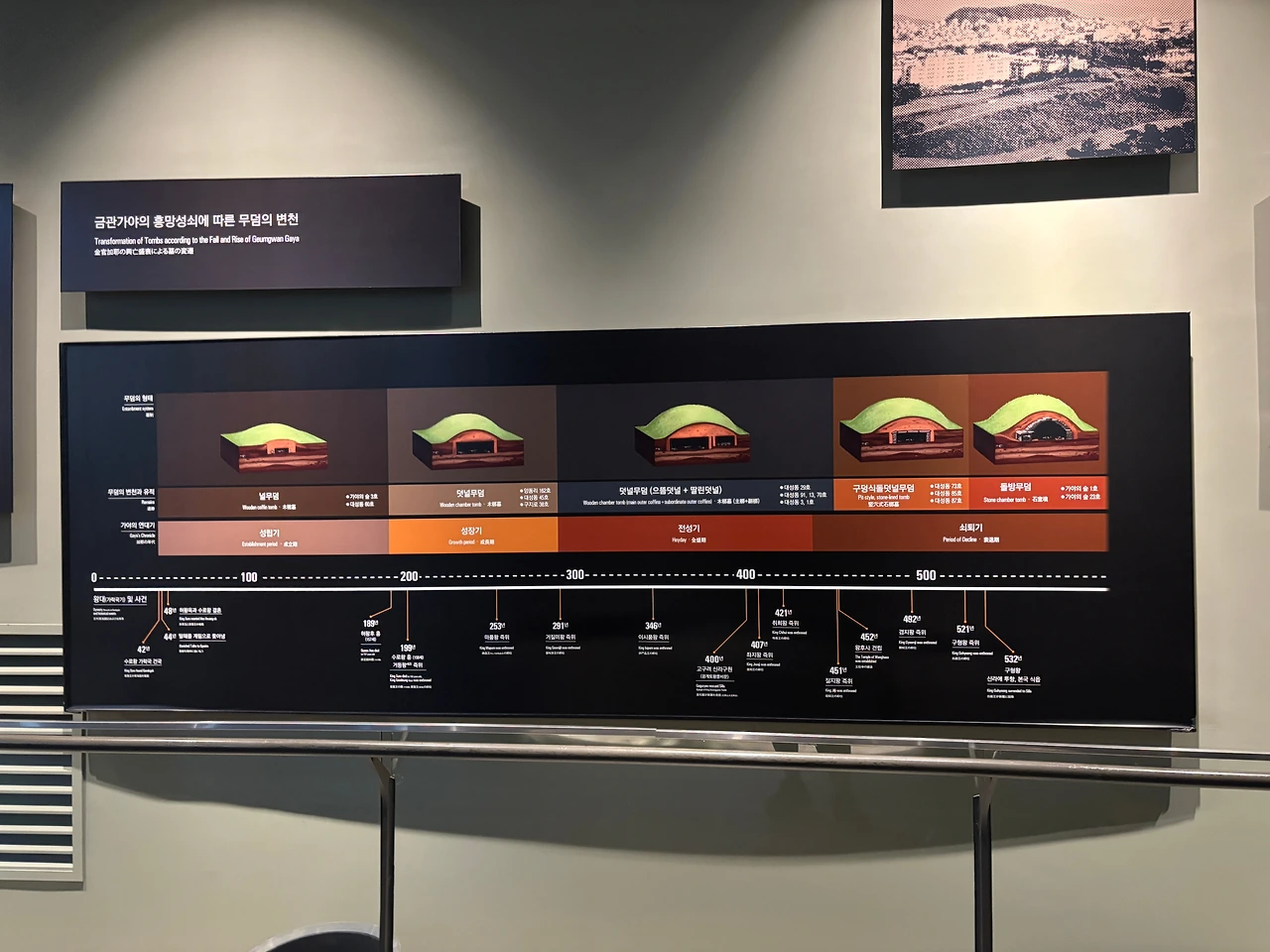 언덕에서 내려와 대성동 고분박물관으로 향했다. 한국사를 공부하면서 가장 어려웠던 부분 중 하나가 바로 시대별로 달라지는 무덤의 형태를 구분하는 일이었는데, 이곳에서는 다양한 무덤 양식의 변화와 당시의 장례 문화를 재현해 놓아 공부에 큰 도움이 되었다.