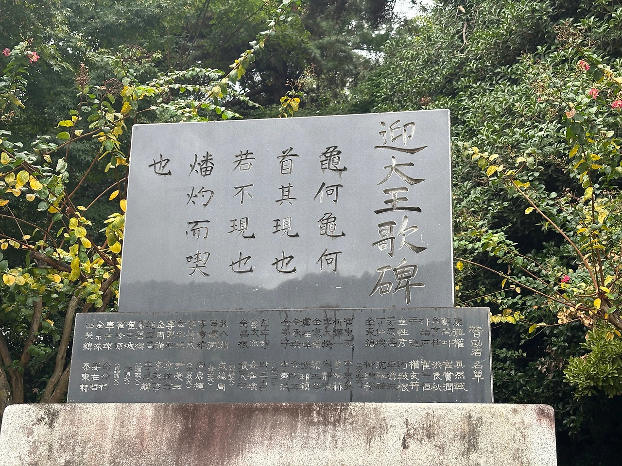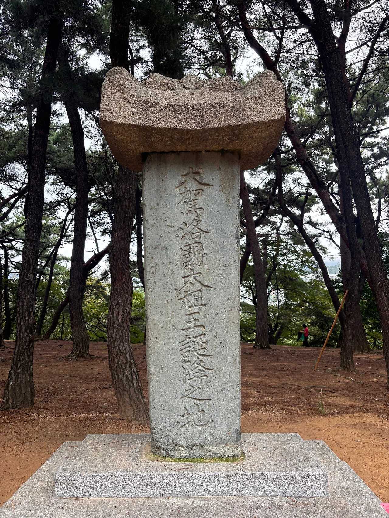 구지봉에 오르자 ‘대가락국태조왕 탄강지’라고 새겨진 비석이 가장 먼저 눈에 들어왔다. 완만한 구릉 위의 평평한 땅을 바라보며, 문득 김수로왕이 아홉 간을 뒤에 세우고 말 위에서 이 가야 땅을 내려다보았을 장면이 떠올랐다.