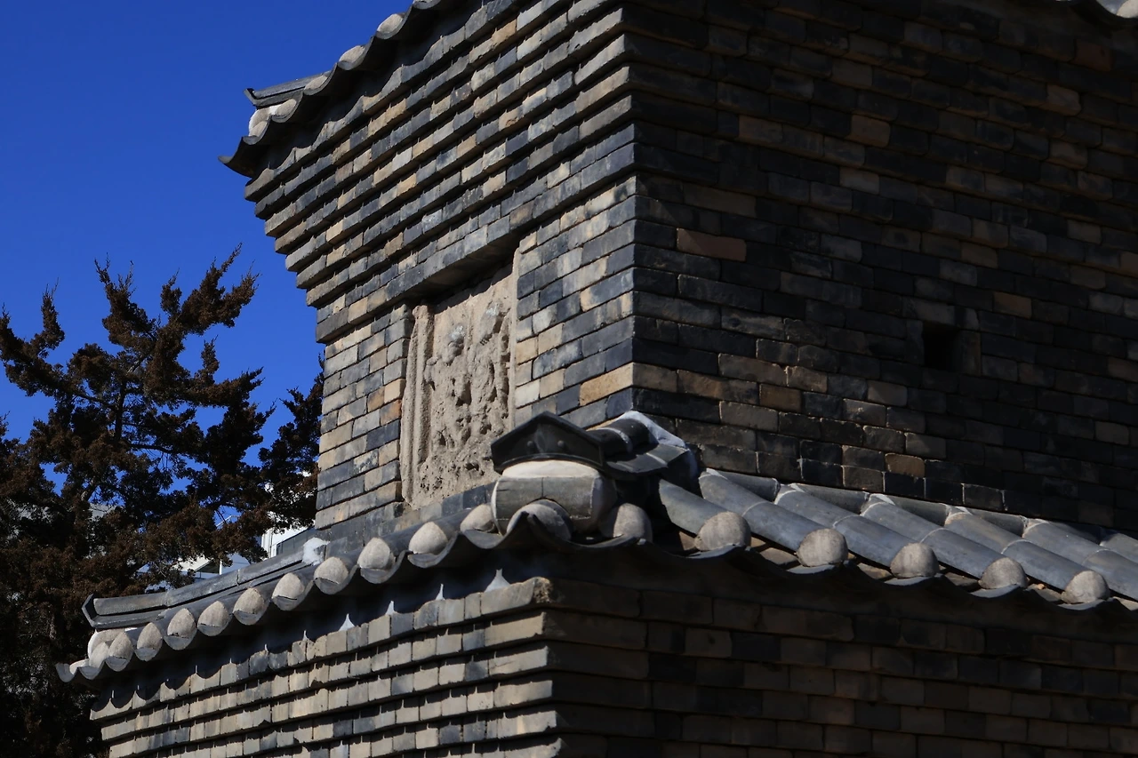 이 전탑에서 눈에 띄는 또 다른 요소는 2층과 3층, 4층 일부에 남아 있는 기와다. 안동 운흥동 오층전탑에서도 기와가 확인되는 것을 보면, 적어도 이 지역 전탑에서는 기와를 덧씌우는 방식이 사용되었던 것으로 보인다. 목탑의 지붕 형식을 의식한 것인지, 단순한 보강이었는지는 분명하지 않지만 벽돌 구조 위에 다른 재료가 더해지면서 인상이 조금 달라진다. 개인적으로는 벽돌만으로 정돈된 모습이 더 단단하고 깔끔하게 느껴졌다.