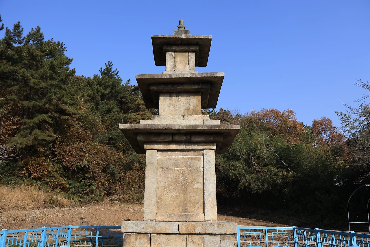 다만 지붕돌(옥개석)의 느낌은 꽤 다르다. 옥개석 끝선이 아주 약하게 들려 있기는 하지만, 기울기가 워낙 완만해서 멀리서 보면 거의 수평에 가깝게 보인다.