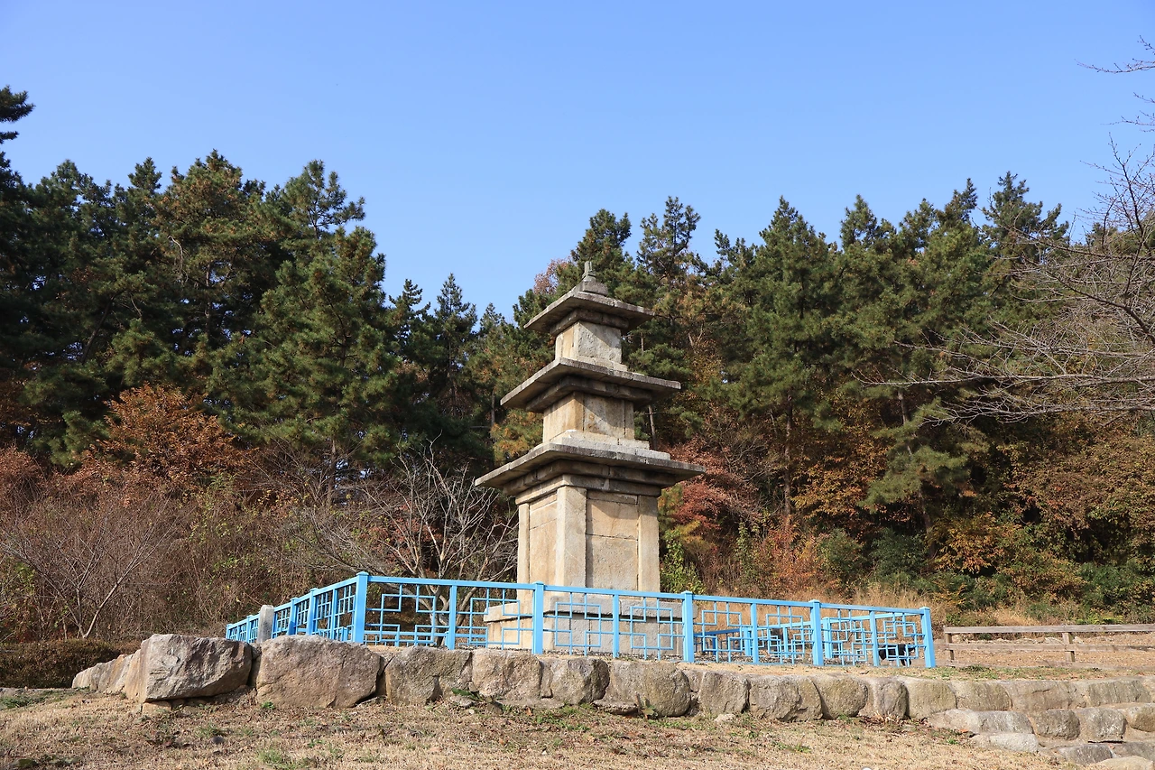 교회 뒤쪽으로 조금 올라가자, 이 마을 이름의 주인공인 삼층석탑이 마침내 모습을 드러냈다. 주변에 별다른 건물 하나 없이 탑 하나가 홀로 서 있었다.