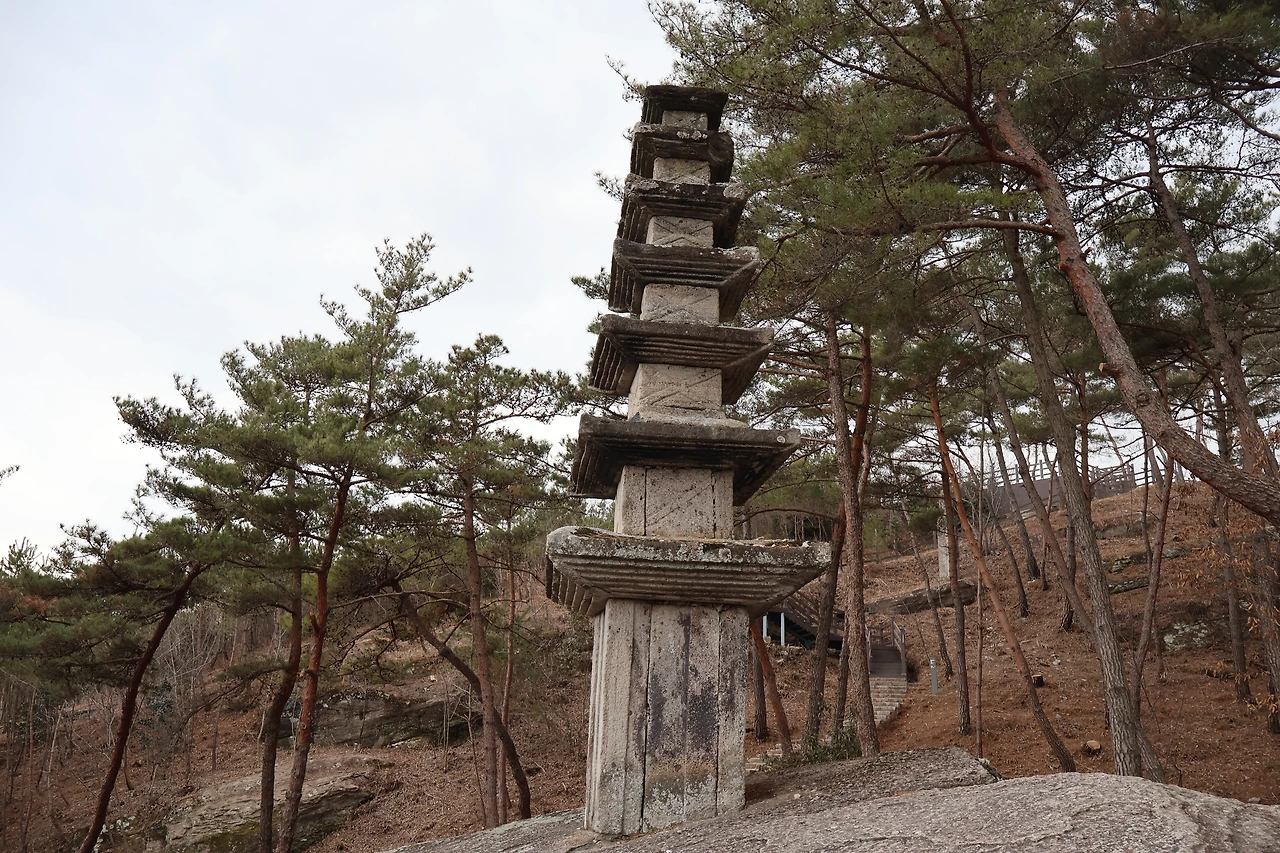 완만한 언덕 위에 놓인 석탑은 지금까지 보아 온 석탑들과는 다른, 낯선 조형 방식을 보여 주고 있었다.