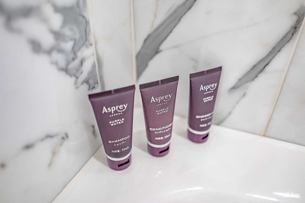 영국 럭셔리 브랜드 아스프레이의 어메니티가 제공되고 다양한 일회용품도 제공된다. 퀄리티도 훌륭한 편으로 리츠칼튼 오사카의 로비층엔 아스프레이 매장도 위치해 있으니 구경해보는 것도 좋겠다.