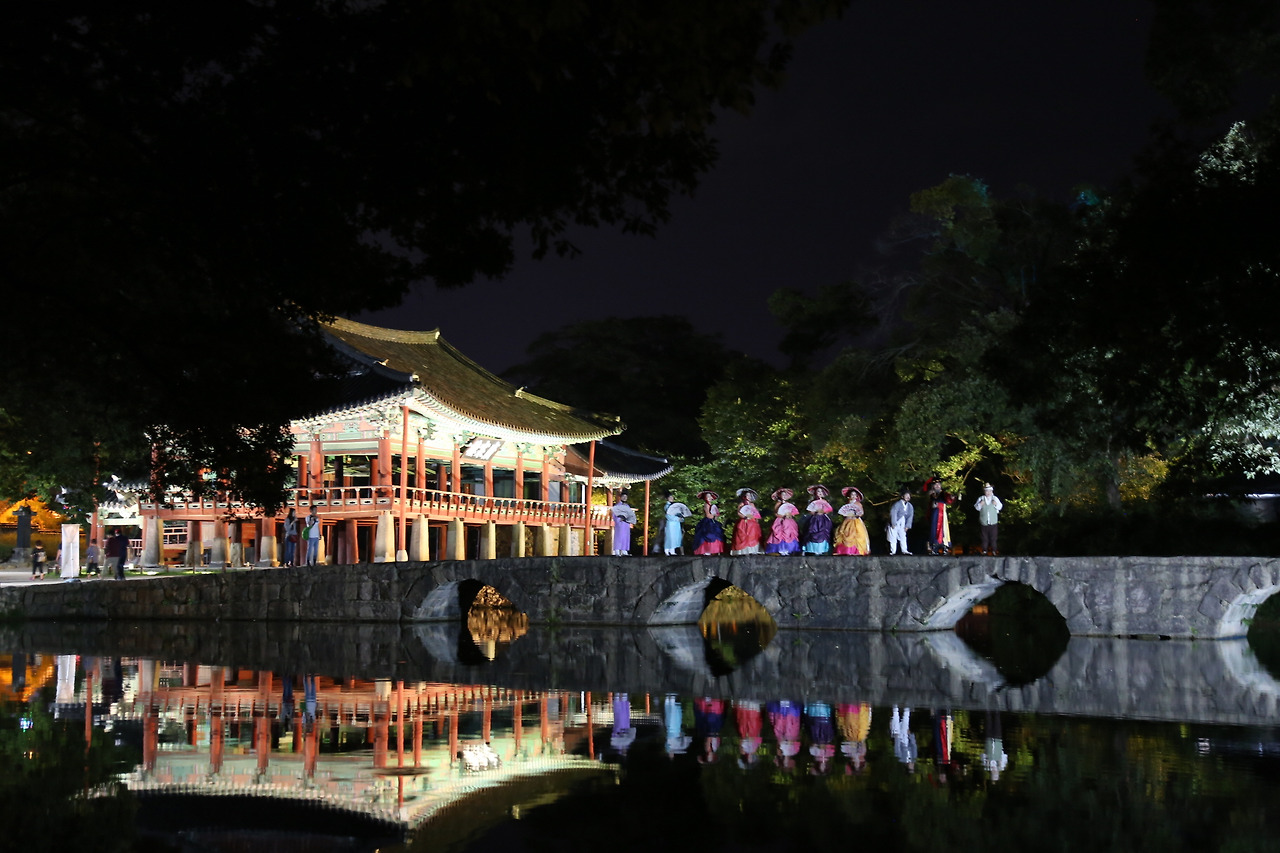 이때 이들이 서 있는 곳은 남원 광한루의 연못이다. 한국의 4대 누각으로 불리는 광한루는 밤이 되면 은은한 조명이 연못에 비추어 더 분위기 있다. 남원이 춘향전의 발상지임을 생각하면 오작교가 <왕이 된 남자> 외에도 많은 사극의 러브스토리 배경이 되는 것은 우연이 아니다. 연인이라면 이 기회에 스튜디오가 따로 없는 남원 광한루에서 드라마 못지 않은 아름다운 추억을 남겨보자.