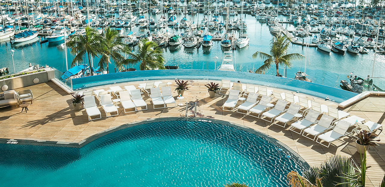 2017년 전 객실 오션 프론트 뷰로 새롭게 레노베이션하여 더욱 완벽한 조망을 갖춘 호텔이다. 호텔의 5층에는 새롭게 인피니티 풀을 완비하여, 리조트 여행의 즐거움을 더했고 객실에서는 하와이의 아름다운 해변과 저물어가는 석양을 감상할 수 있어 하와이 여행의 특별한 시간을 만끽할 수 있는 것이 특징이다. 객실 내 어메니티로는 '말리에'라는 올가닉 브랜드의 제품을 두고 있어 객실에서의 시간을 더욱 즐겁게한다. 그 뿐만 아니라 하와이 특유의 또한 와이키키 초입에 위치하여, 공항까지의 뛰어난 접근성도 갖추고 있다.