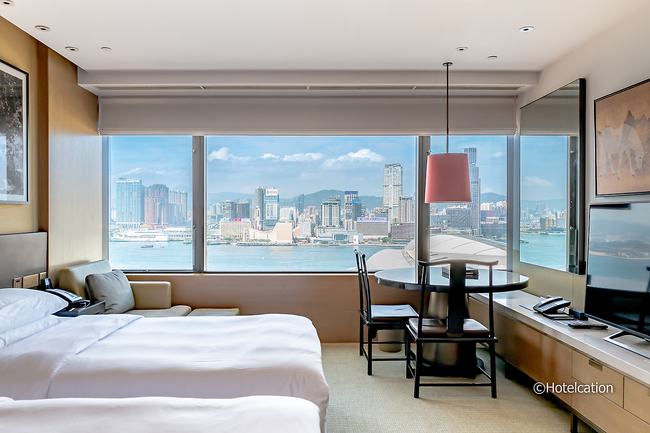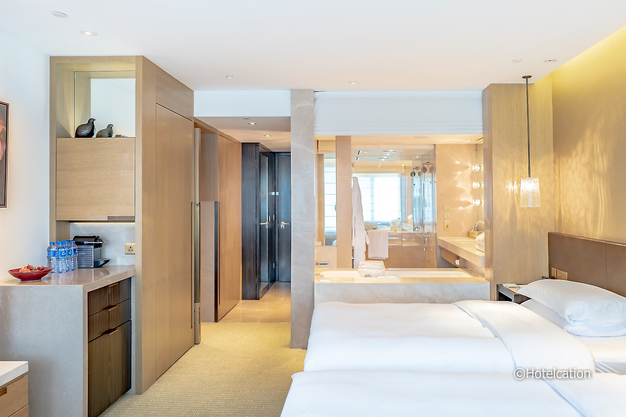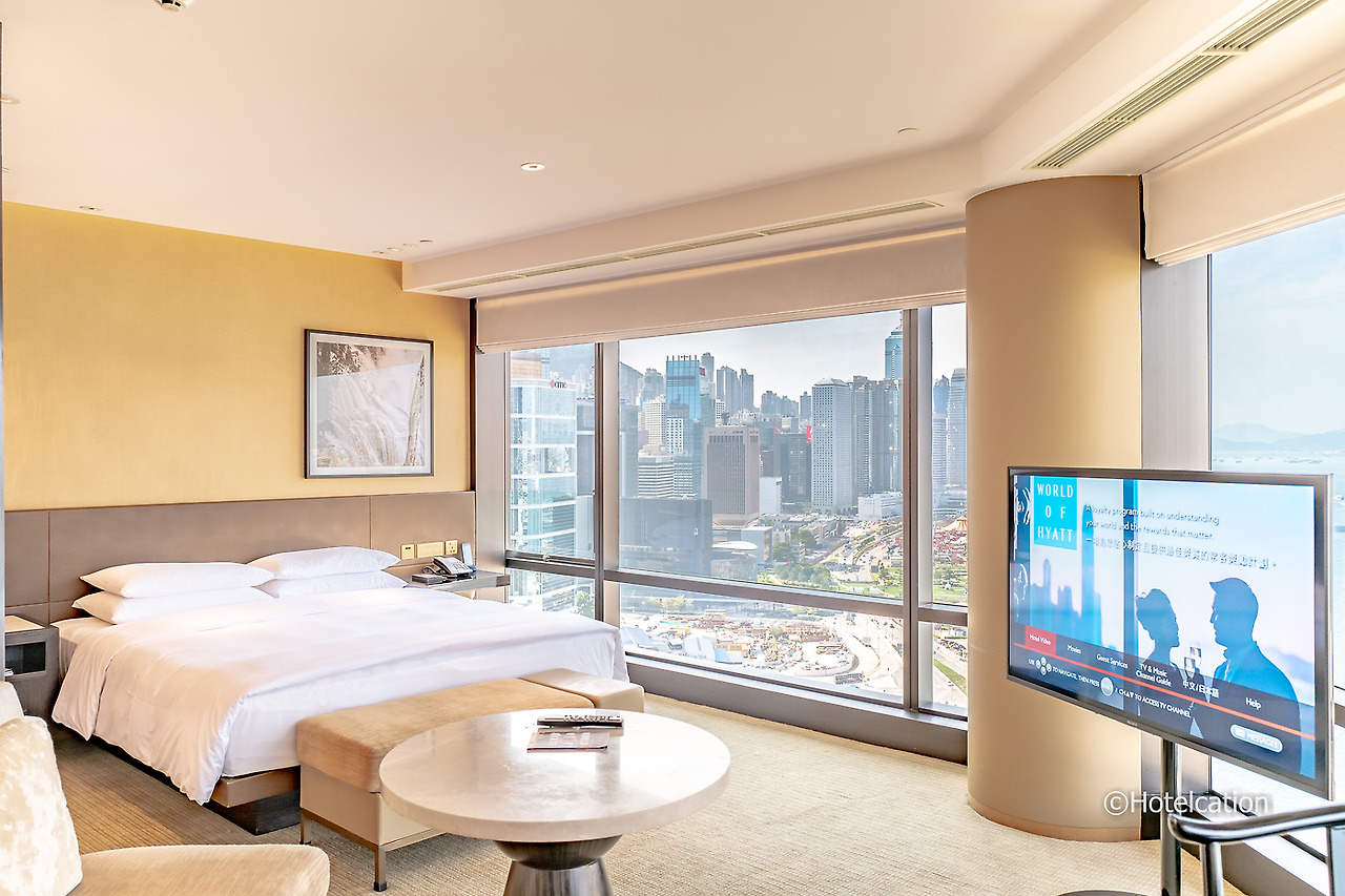 그랜드 하얏트 홍콩의 기본 객실은 크게 기본 객실과 플래토 룸으로 나뉘어 있다. 단연 인기 있는 객실은 항구 전망인 하버뷰 객실이다. 크기는 약 12평형으로 수납공간을 넉넉하게 만들고 세면대가 있는 화장실을 별도로 구비해 놓아서 그런지 좀 좁아 보이는 느낌이 든다.