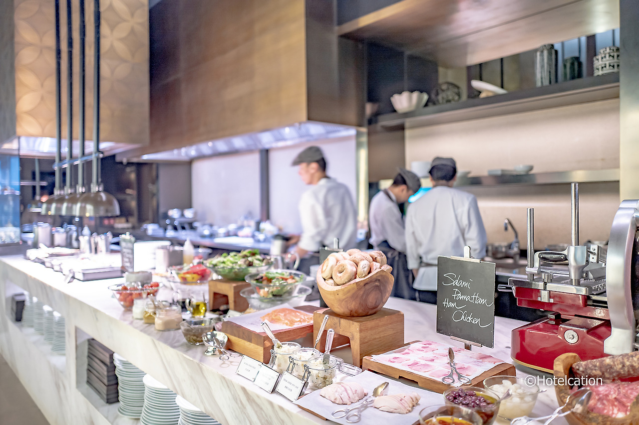 조식은 대부분 로비 옆에 위치한 그랜드 카페에서 제공된다. 음식 구색이 다양한 편은 아니지만 평소에 보기 힘든 요리들이 많다. 대부분 오픈 키친으로 요리하는 모습을 직접 볼 수 있다.