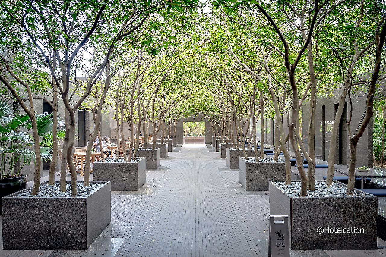 11층의 피트니스 클럽을 지나 야외로 나오면 석재로 고급스럽게 꾸며진 공간이 나온다. 특히 야외로 나가야 하기 때문인지 우산을 미리 자리에 세팅해 놓아 누구든지 불편하지 않게 나갈 수 있도록 배려해 놓았다.