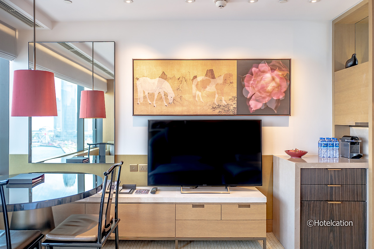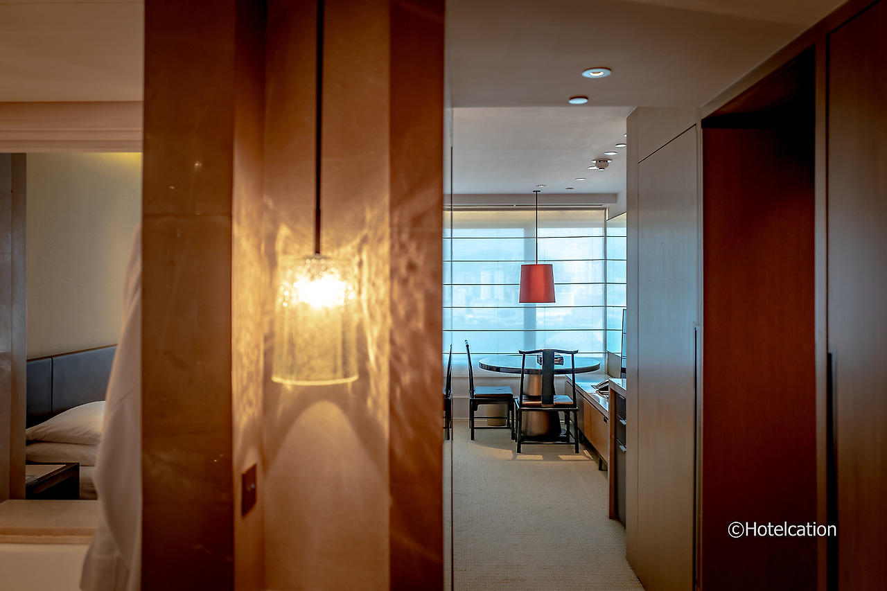 이 객실은 하버 뷰 디럭스 룸 객실로 일반 객실보다 조금 더 크고 소파 등 공용공간이 구비되어 있는 스튜디오 스위트 급 객실이다. 특히 하버 뷰에 세미 코너 구조의 객실이라 전망이 훌륭하다.