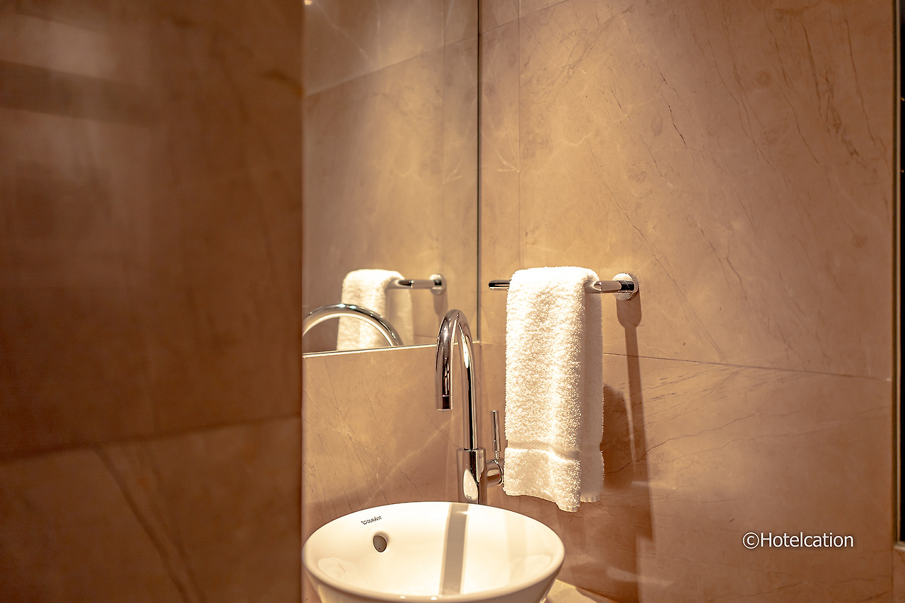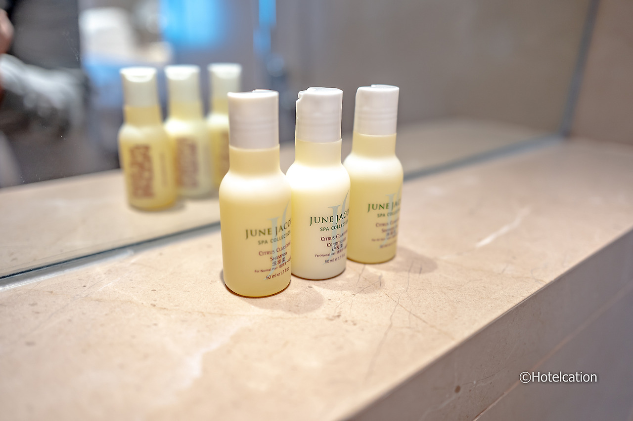 하나의 세면대와 다양한 일회용 어메니티를 갖추었다. 어메니티는 준 제이콥스 제품이 제공된다.