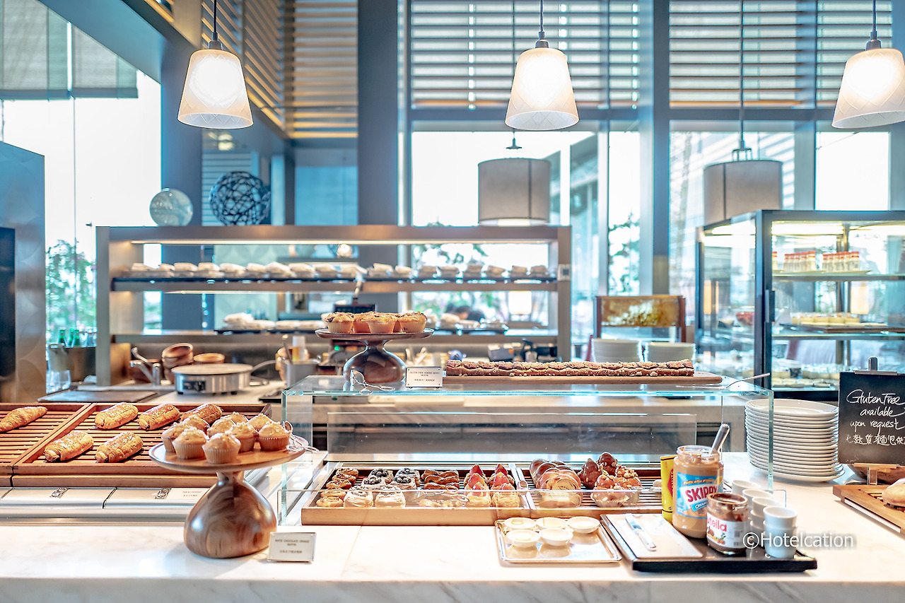 층고가 높아 시원한 로비는 다소 올드해 보인다. 객실 수 대비 공용공간이 좀 부족하지 않나 싶다. 1층에는 메인 뷔페 레스토랑이 있고 2층에는 작은 베이커리와 뷔페 레스토랑이 하나 더 있다. 그랜드 하얏트 홍콩에는 10개나 되는 카페와 레스토랑이 있는데 너무나 매력적인 곳 몇 곳만 소개하도록 하겠다.