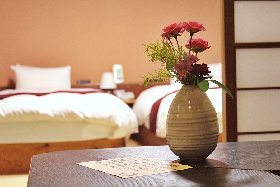 가이세키 후, 밤이 조금 더 깊어질 무렵, 거의 한 끼 수준의 도시락 서비스가 이어진다. 출출할 때 야참으로 먹으라는 것. 모든 객실의 냉장고 음료가 무료인 것도 이럴 땐 참 흐뭇하다. 시원한 맥주와 곁들이는 오니기리의 맛이란! 다다미방이라면 투숙객이 잠시 자리를 비울 때 이부자리를 정갈하게 깔아두겠지만, 이곳은 침대가 있으니 이부자리 서비스는 생략. 대신 시원한 자리끼를 슬쩍 놓고 간다. 세심한 마음과 함께 료칸의 밤이 깊어간다.