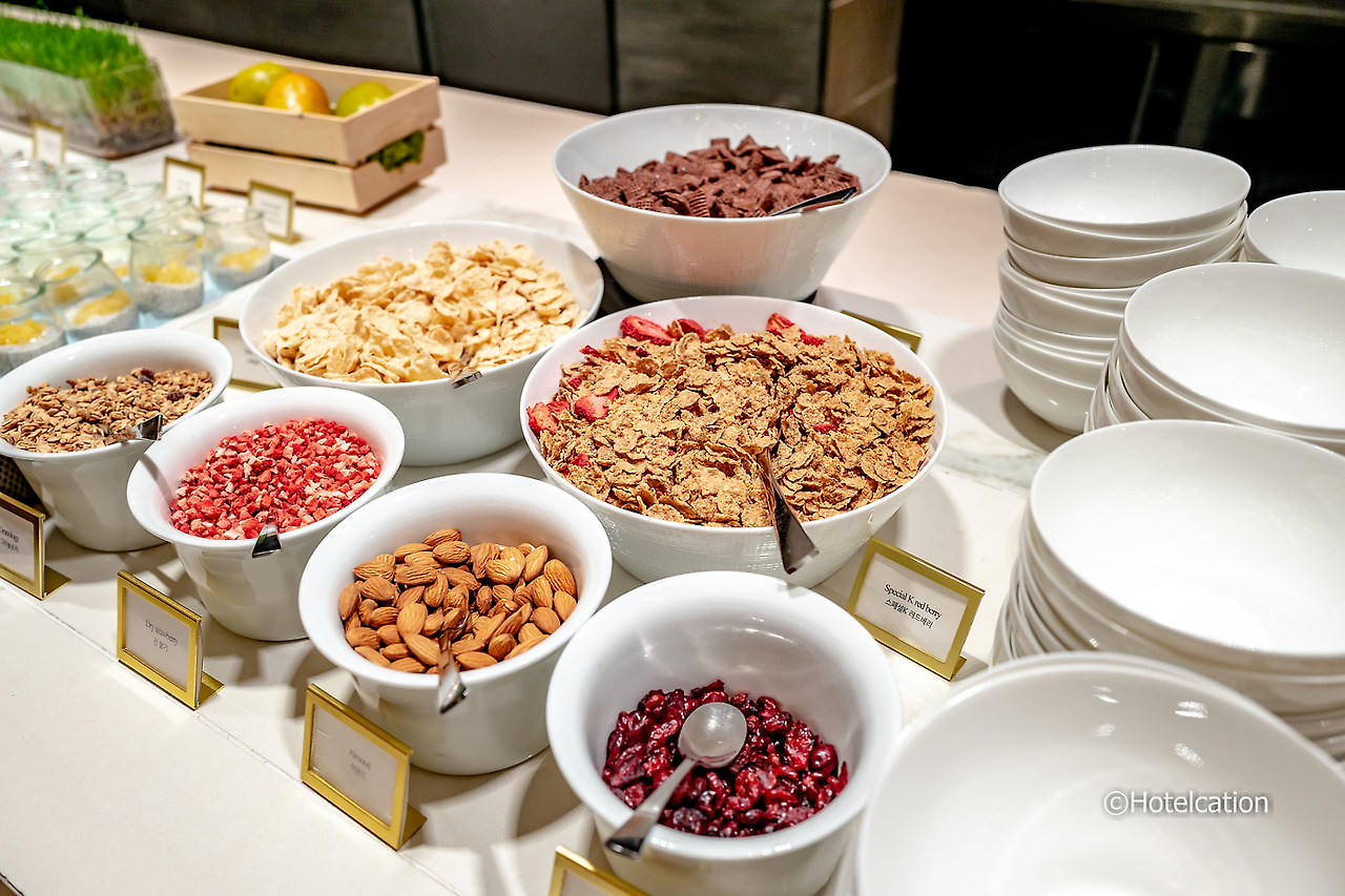 조식은 시그니엘에서 가장 호불호가 많이 갈리는 부분이다. 보통의 특급호텔 뷔페 조식을 생각하면 안된다. 굉장히 훌륭한 수준의 컨티넨탈 조식이라고 생각하면 편한데 대체적으로 핫 푸드가 적고 빵이나 과일 같은 부분에 강점이 있는 조식이다.
