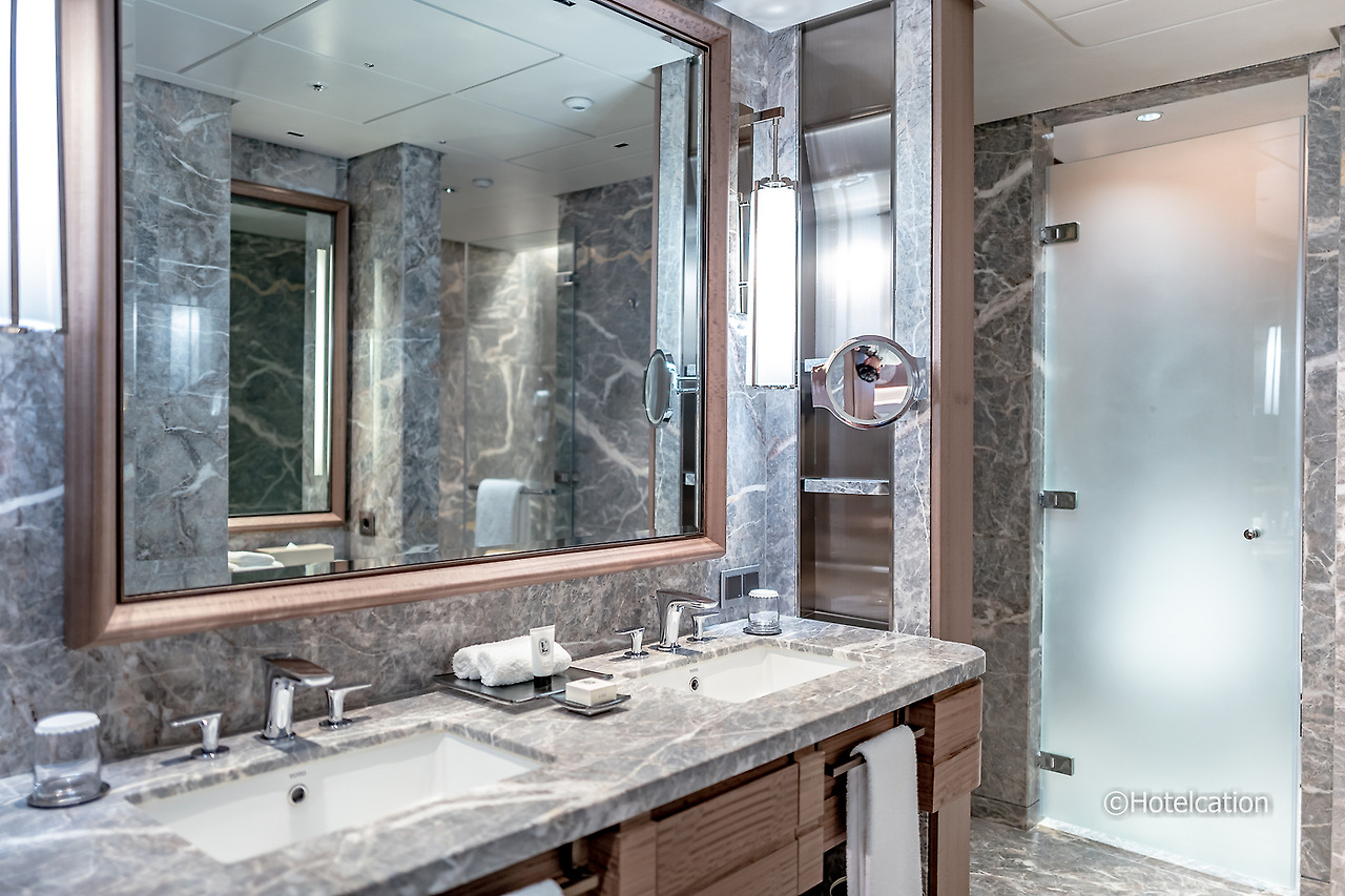 욕실 공간도 비교적 넓다. 별도로 분리된 샤워실과 욕조, 화장대와 2개의 세면대를 갖추고 있다.