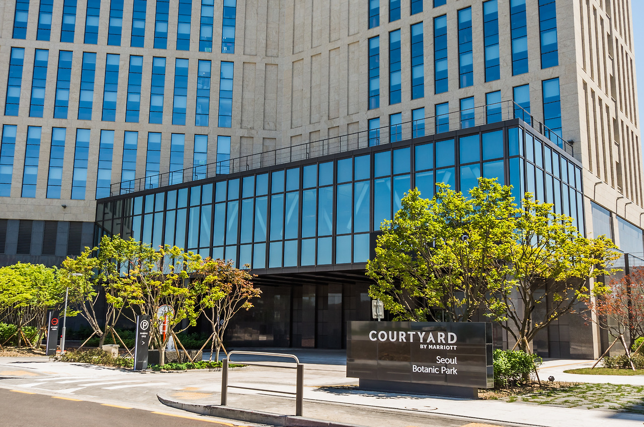 코트야드 서울 보타닉파크는 마곡나루역에 위치한 호텔로 서울 근교에서 이용할 수 있는 가장 가성비가 뛰어난 호텔 중 한 곳입니다. 특히 이그제큐티브 룸이나 스위트 룸의 경우 가성비도 좋지만 조식을 라운지가 아닌 뷔페에서 주는 점도 특별합니다. 서울 식물원과 가까운 점도 좋고요.