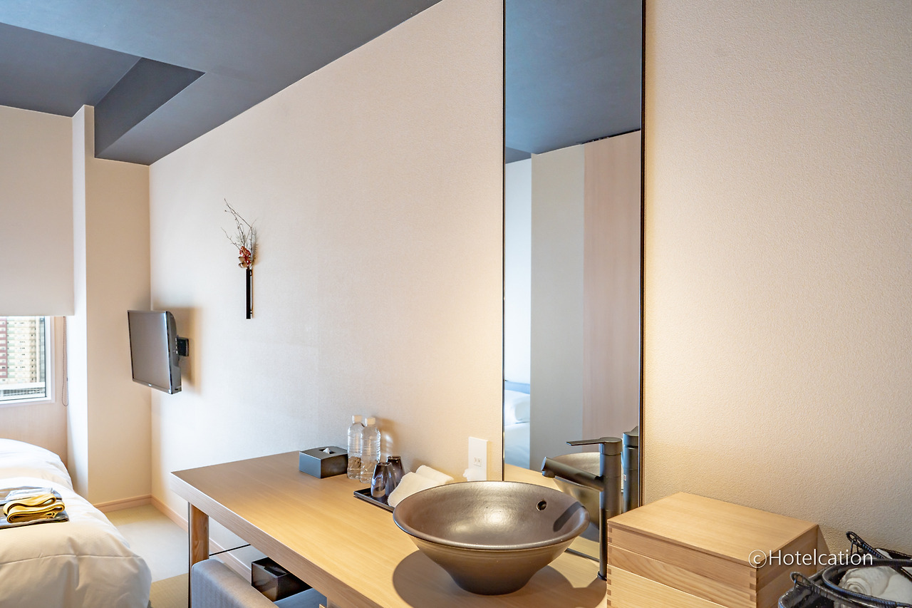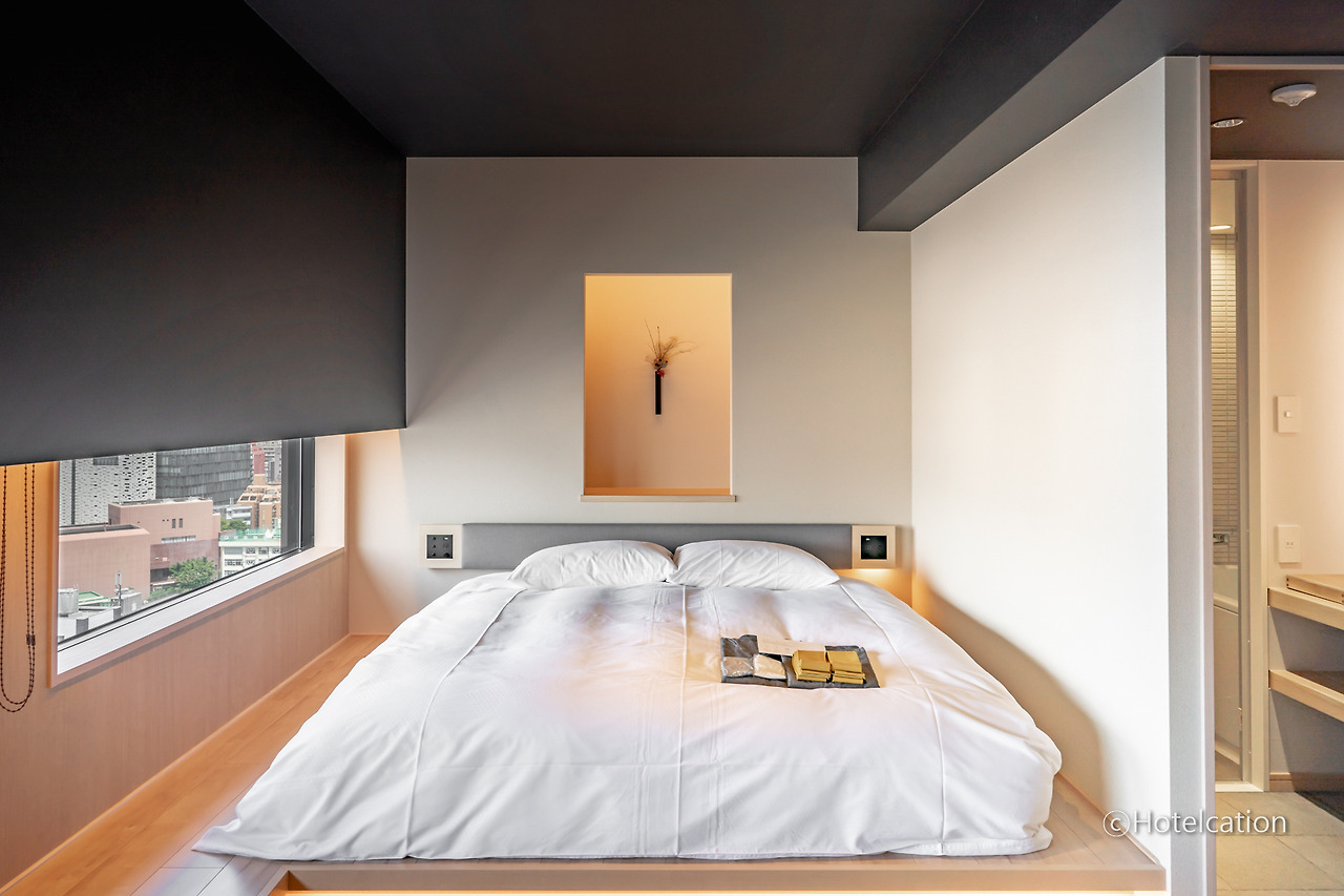 베딩은 생각보다 나쁘지 않았습니다. 객실 크기가 작다 보니 기대를 안 하게 되는데 구성요소들 하나하나의 품질은 상당히 괜찮은 편입니다. 콘센트가 한 개밖에 제공되지 않는 점은 좀 치명적이네요. 기본 객실부터 타타미가 베이스로 깔려있습니다.