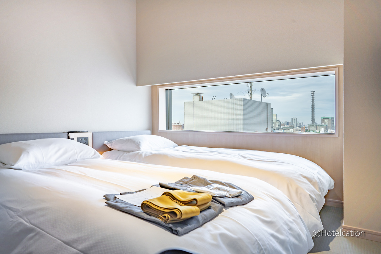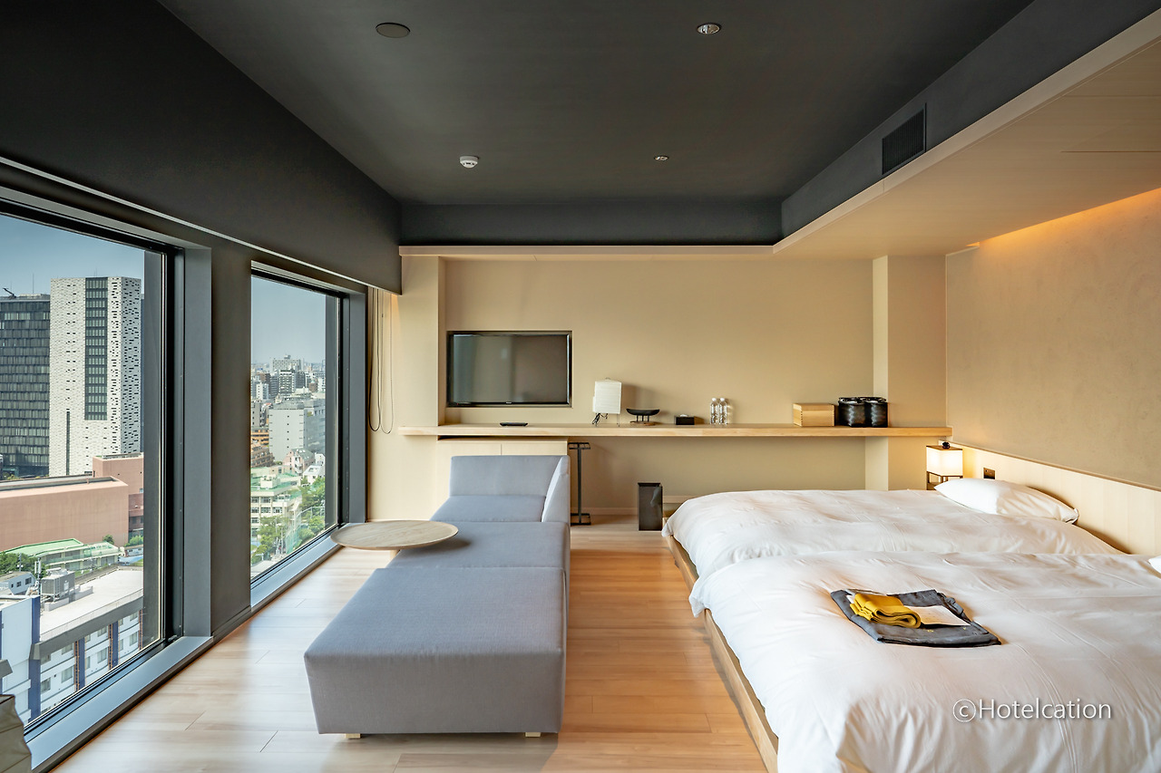 보통 일반적인 호텔은 침대가 하나인 더블 룸과 두 개인 트윈 룸의 객실 크기는 같은 편입니다. 하지만 료칸 유엔 신주쿠는 기본 트윈룸은 5평이 채 안 되는 크기지만 더블 룸의 경우에는 트윈 룸의 2배에 가까운 크기로 구성되어 있습니다. 개인적으로는 기본 트윈 룸보다는 추가 요금을 지불하고서라도 조금 더 넓은 크기의 객실을 이용하는 것을 추천합니다.